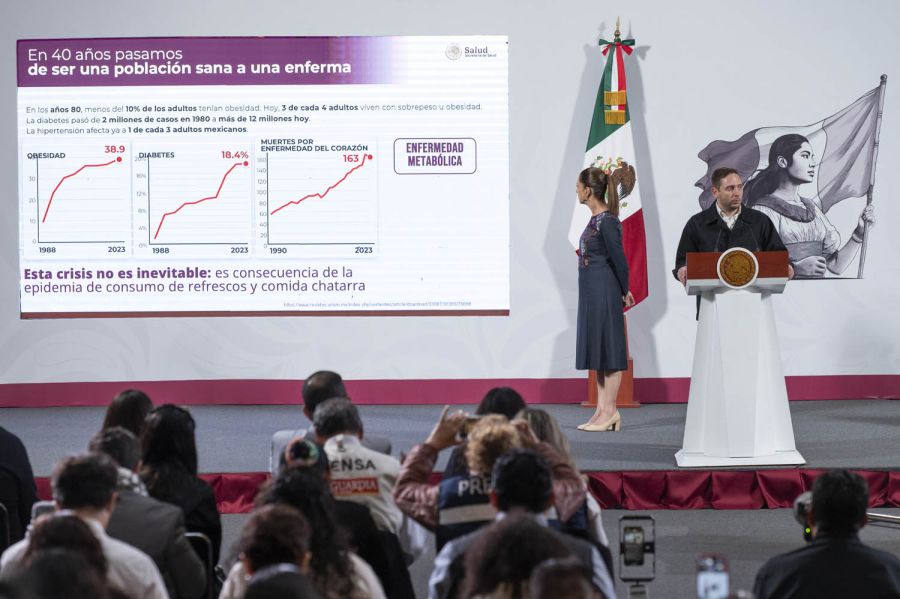 En los años 80, menos del 10 por ciento de los adultos padecía obesidad; hoy, casi tres de cada cuatro adultos tienen sobrepeso u obesidad. La diabetes, que en los 80 afectaba a menos de dos millones de personas, ahora impacta a casi el 18 por ciento de los adultos. La hipertensión afecta a uno de cada tres adultos mexicanos, y la tasa de muertes por enfermedades del corazón se ha triplicado, pasando de 60 por cada mil muertes en 1980 a casi 163 por cada mil hoy, todo ligado a enfermedades metabólicas.