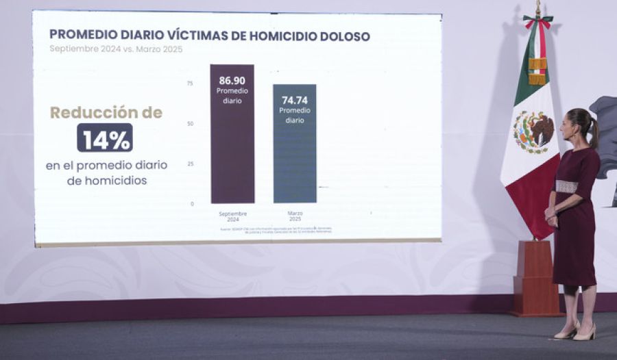 La secretaria ejecutiva del Sistema Nacional de Seguridad Pública, Marcela Figueroa Franco, destacó que en el primer semestre de la administración de la Presidenta, de septiembre de 2024 a marzo de 2025, se registró una disminución del 14 por ciento en el promedio diario de víctimas de homicidio doloso.