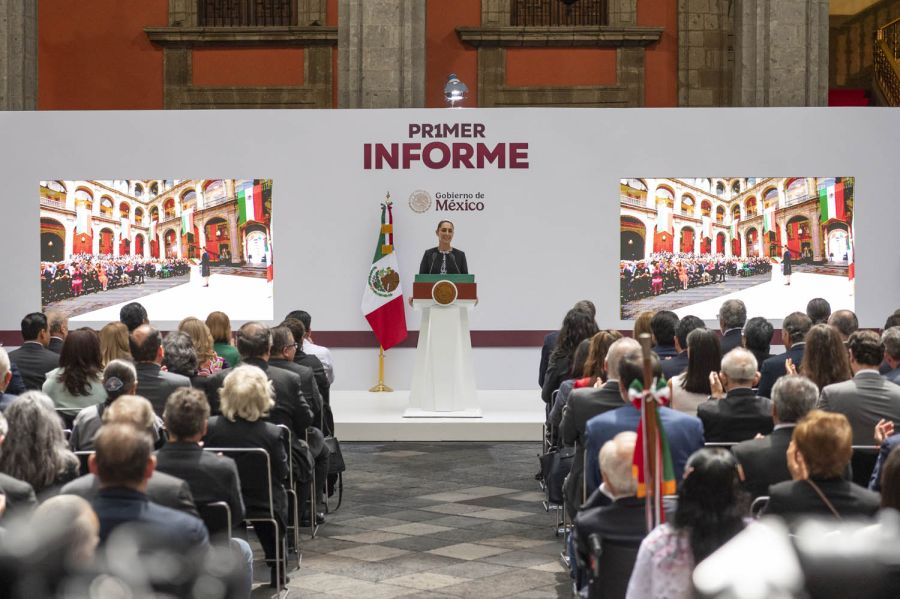 Expuso que han sido 11 meses de trabajo arduo, por lo que agradeció a todo su Gabinete legal y ampliado, a las y los gobernadores su apoyo. Acompañaron a la Presidenta en su Primer Informe de Gobierno, gobernadoras y gobernadores de los estados; representantes del Poder Legislativo y Judicial; integrantes del Gabinete legal y ampliado, del Consejo Nacional de Pueblos Indígenas, empresarios, organismos autónomos, comunidad educativa, artística y cultural.